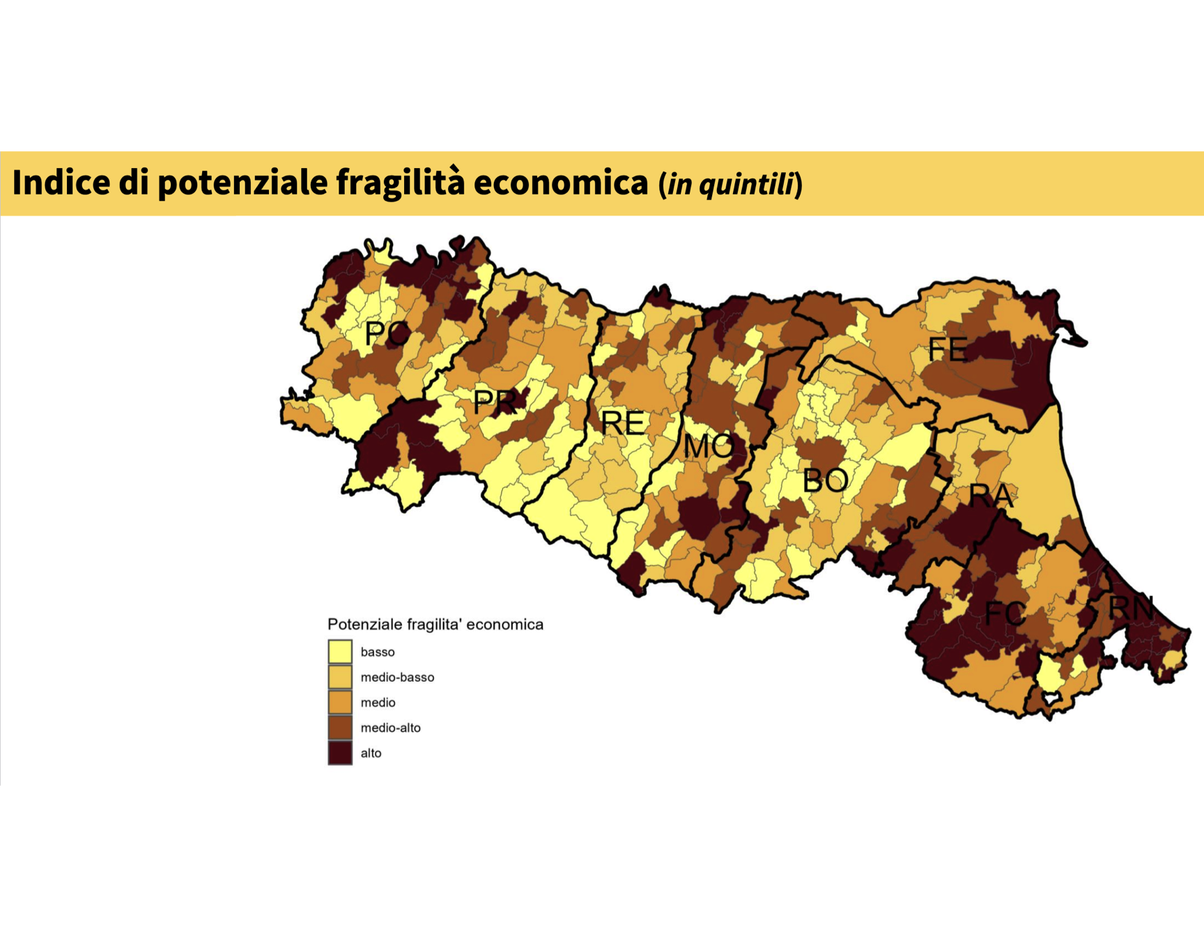 - Fragilità economica: meno intensa a Parma rispetto alle province romagnole